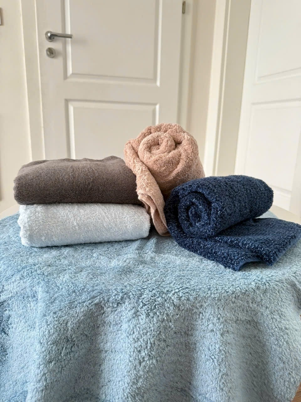 - Khăn mềm mại; Tẩy nhuộm không hóa chất độc hại; Thấm hút gấp hai lần khăn thông thường.