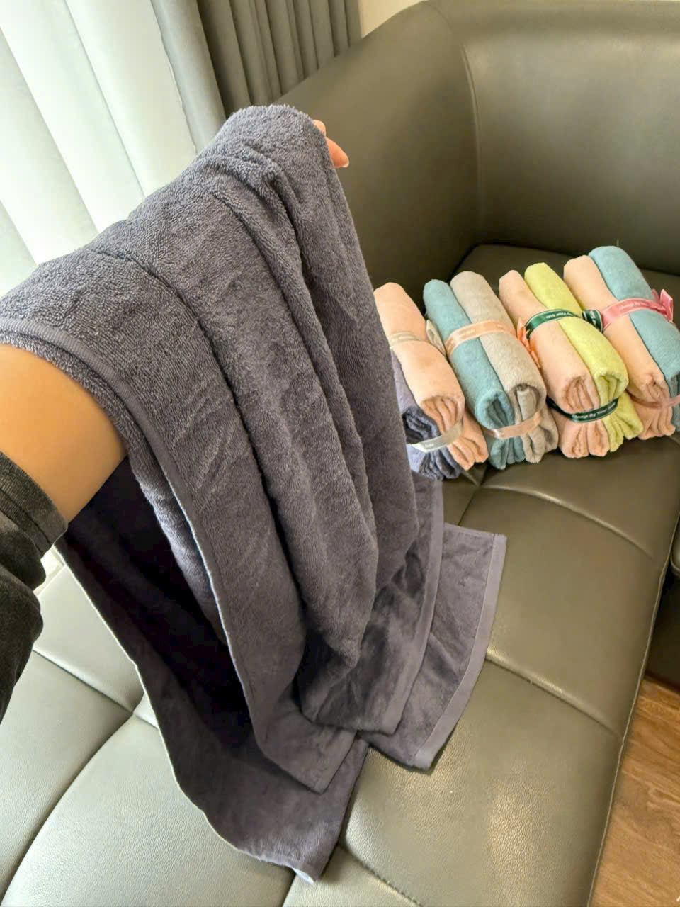 - Khăn mềm mại; Tẩy nhuộm không hóa chất độc hại; Thấm hút gấp hai lần khăn thông thường.